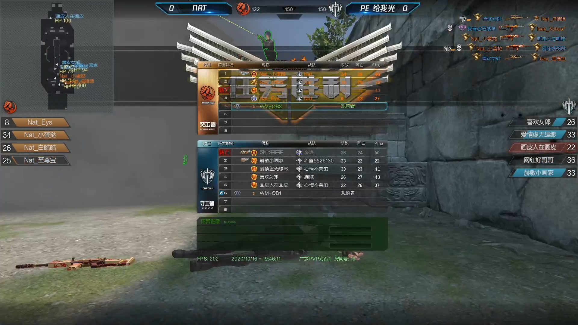 第二图监狱PE给我光率先担任突击者,PE给我光的枪法碾压NAT,且NAT残局处理问题较大,上半场PE给我光6-3领先;下半场画皮的5杀帮助PE给我光以10-3的比分拿下比赛胜利,大比分2-0战胜NAT。