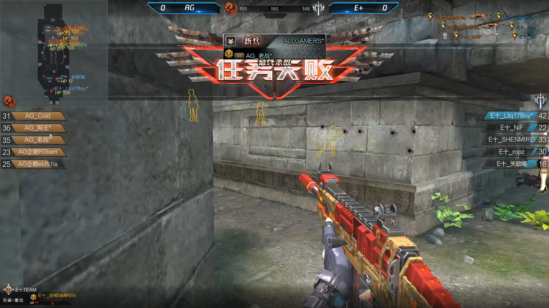 第二场比赛的对战双方是AG和E+,比赛地图顺序为玛雅花园-海滨小镇-监狱,第一图玛雅花园AG担任突击者,这场比赛双方比分十分接近,除了中途的几波压家稍微拉开了分差之外,分差一直都保持在10个人头以内,最终AG以150-148的比分险胜,大比分1-0领先;