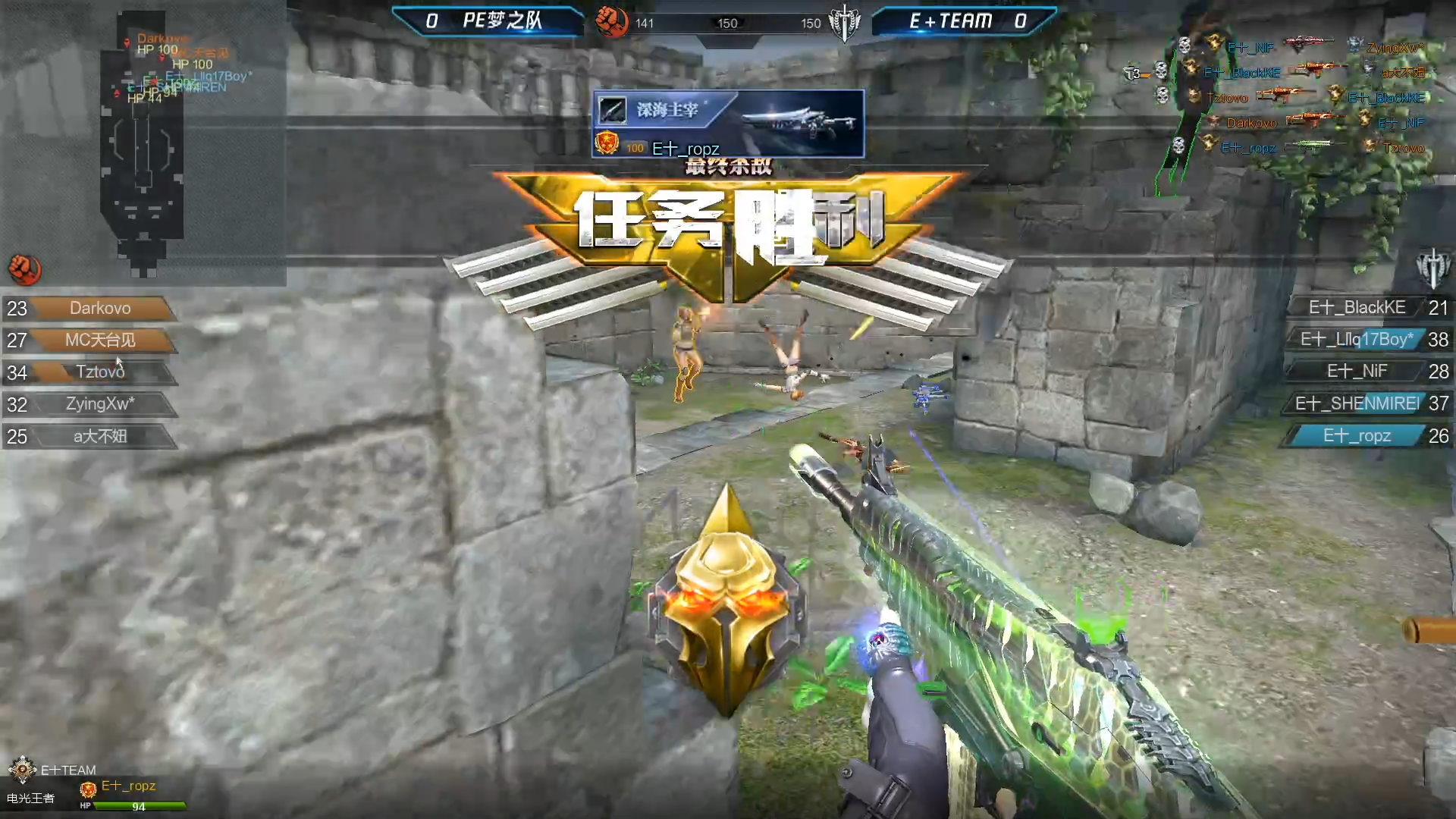 第二场比赛的对战双方是PE梦之队和E+,比赛地图顺序为玛雅花园-海滨小镇-浦东小镇,第一图玛雅花园E+担任守卫者,整局比赛E+始终占据着微弱的优势,PE梦之队虽有几波小刷屏但于事无补,最终E+以151-140的比分拿下第一图,大比分1-0领先;