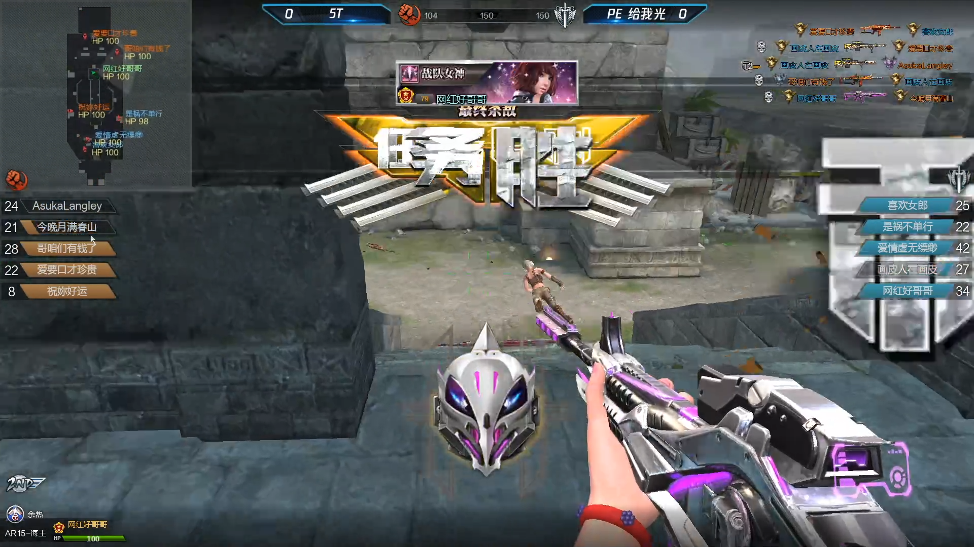 今天第一场比赛的对战双方是PE给我光和5T,比赛地图顺序为玛雅花园-13号工厂-海滨小镇,第一图玛雅花园PE给我光担任守卫者,PE给我光打的很有侵略性,5T全程被压制,只能被压在家里打,最终PE给我光以150-104的比分拿下第一图,大比分1-0领先;