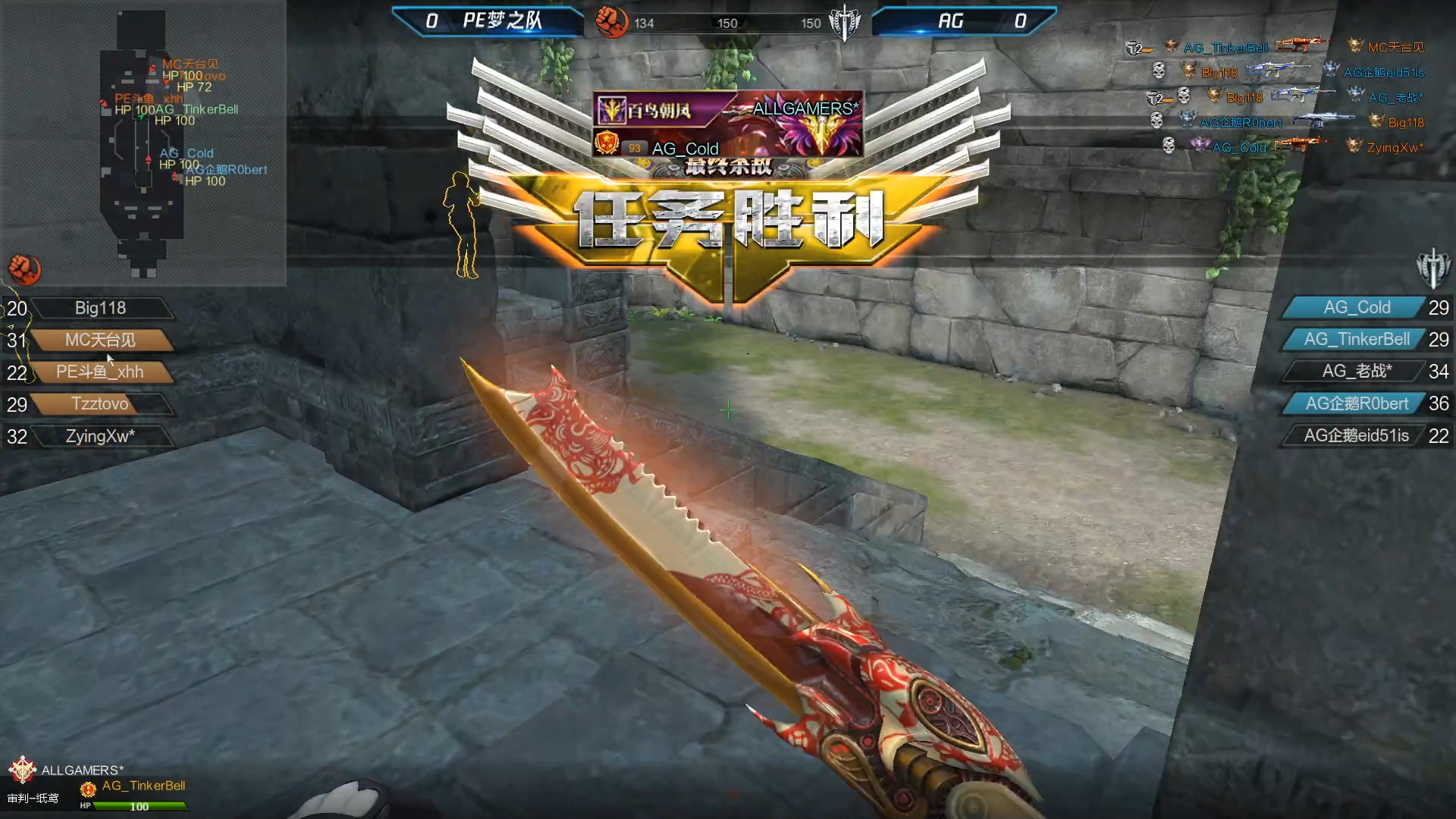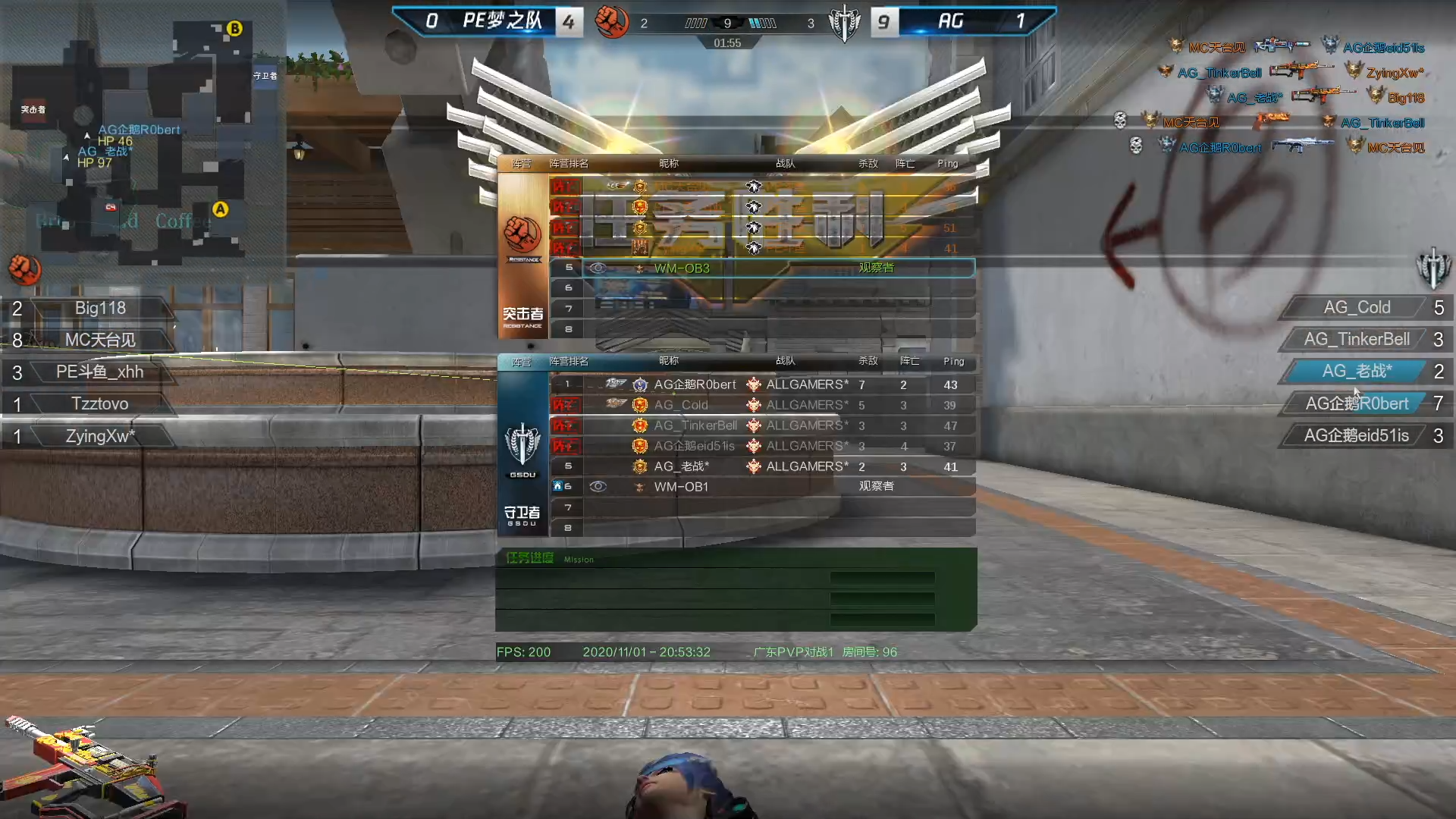 第二场比赛的对战双方是PE梦之队和AG,比赛地图顺序为玛雅花园-浦东小镇-海滨小镇,第一图玛雅花园AG担任守卫者,这场比赛双方实力较为接近,但AG老战和李寒前期的发挥至关重要,数次刷屏为队伍创造优势,最终AG以150-134的比分拿下第一图,大比分1-0领先;