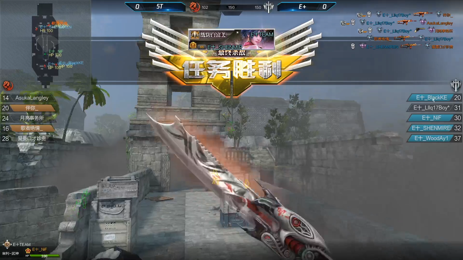 今天第一场比赛的对战双方是E+和5T,比赛地图顺序为玛雅花园-13号工厂-浦东小镇,第一图玛雅花园E+担任守卫者,E+枪法碾压,5T虽然打了几波小高潮但于事无补,最终E+以150-102的比分拿下第一图,大比分1-0领先;