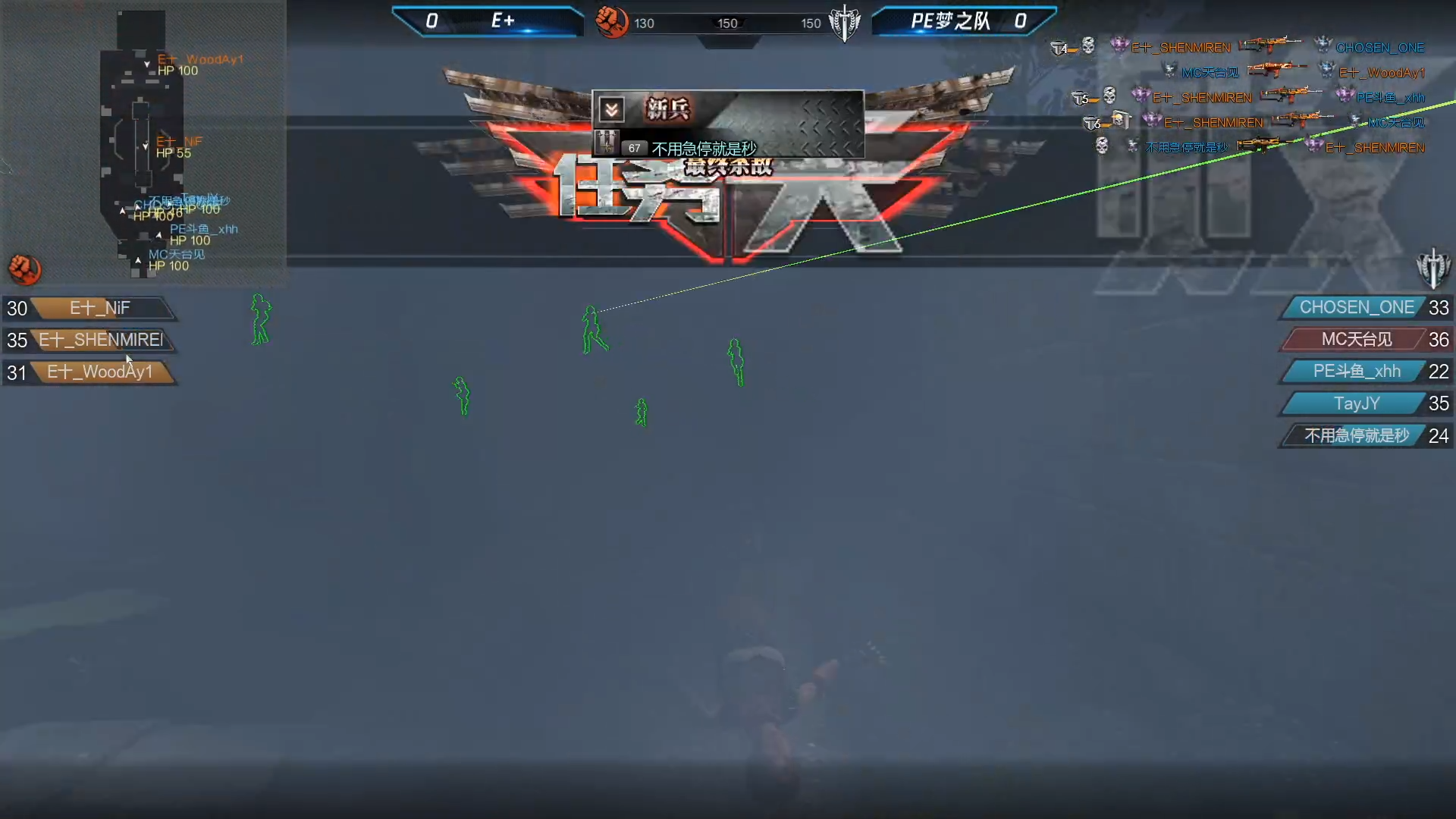今天第一场比赛的对战双方是E+和PE梦之队,比赛地图顺序为玛雅花园-13号工厂-监狱,第一图玛雅花园PE梦之队担任守卫者,前期双方的分差并不大,PE梦之队占据着微弱的优势,但E+的2人发挥不佳,赛程后期,PE梦之队牙牙的发挥也尤为重要,最终PE梦之队以150-130的比分拿下第一图,大比分1-0领先;