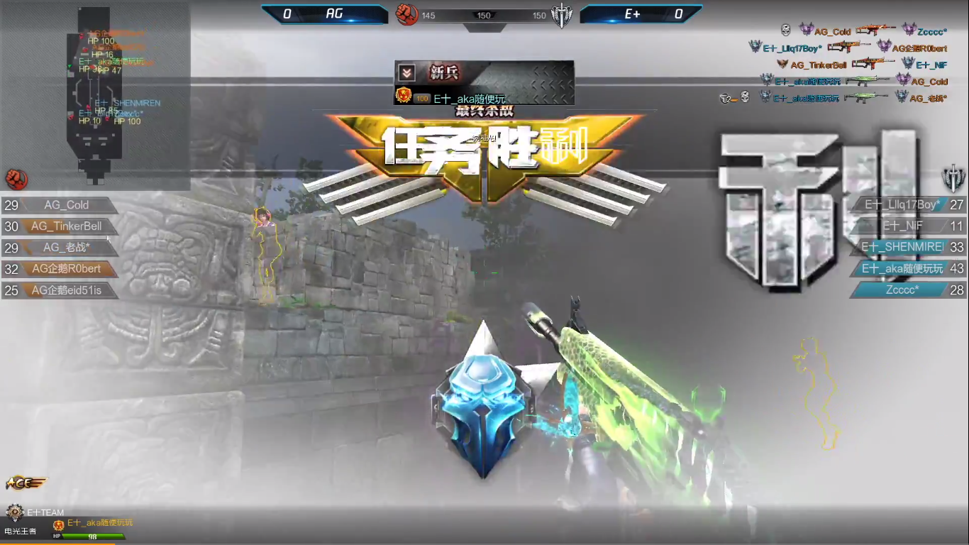 第二场比赛的对战双方是AG和E+,比赛地图顺序为玛雅花园-海滨小镇-浦东小镇,第一图玛雅花园E+担任守卫者,这场比赛双方的实力都特别接近,但中途E+逆反掉线使E+不得不放缓节奏,AG选择了压家但E+小男孩的发挥十分关键,最终逆反重连回来之后E+一鼓作气,成功以149-146的比分拿下第一图,大比分1-0领先;