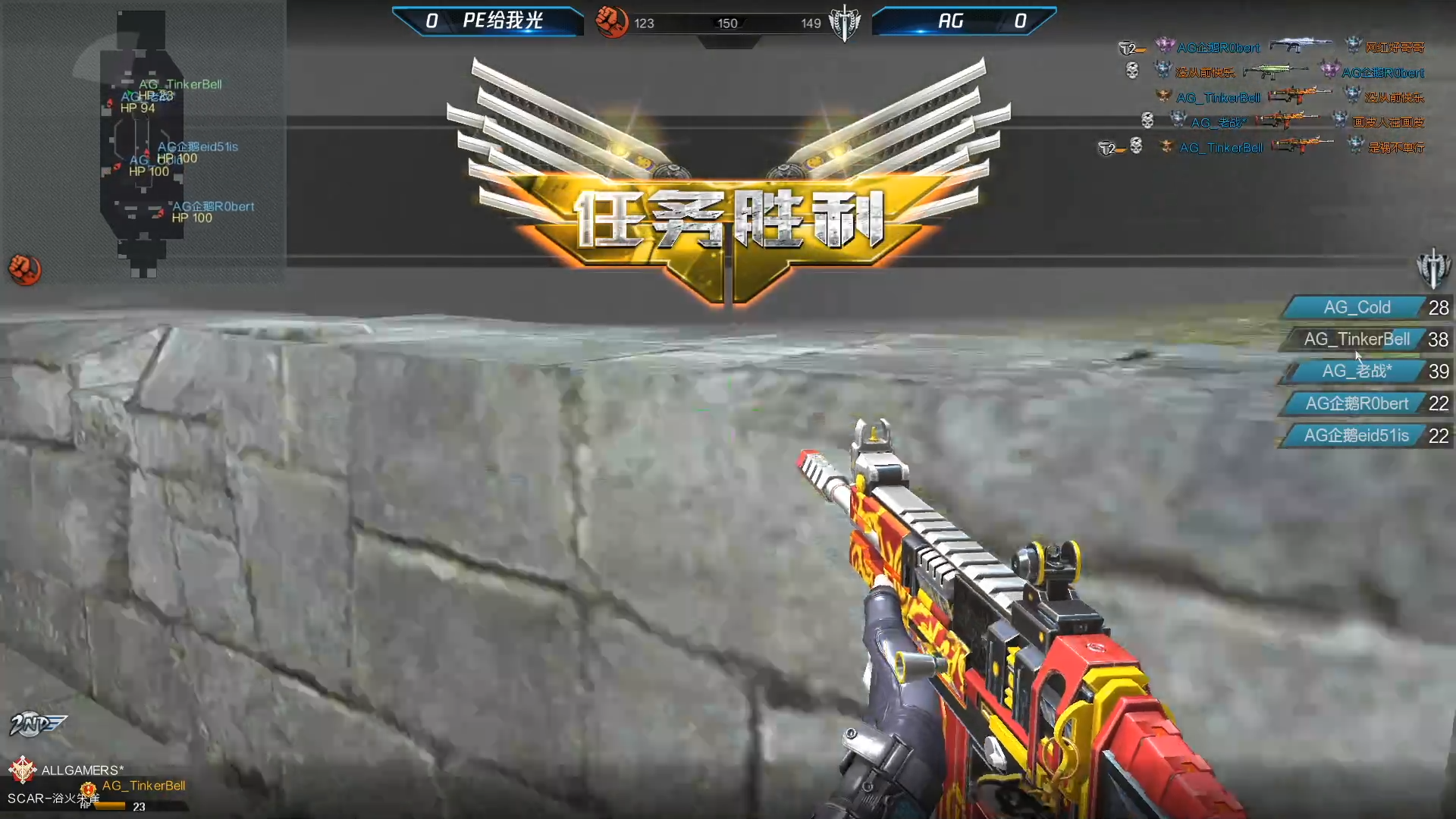 今天第一场比赛的对战双方是AG和PE给我光,比赛地图顺序为玛雅花园-海滨小镇-监狱,第一图玛雅花园AG担任守卫者,AG刚开局就一波刷屏,但PE给我光前期的状态也不错,甚至一度压到了AG家里,但随着后期老战和宋小宝的爆发,AG逐渐扳回劣势,最终以149-123的比分拿下第一图,大比分1-0领先;