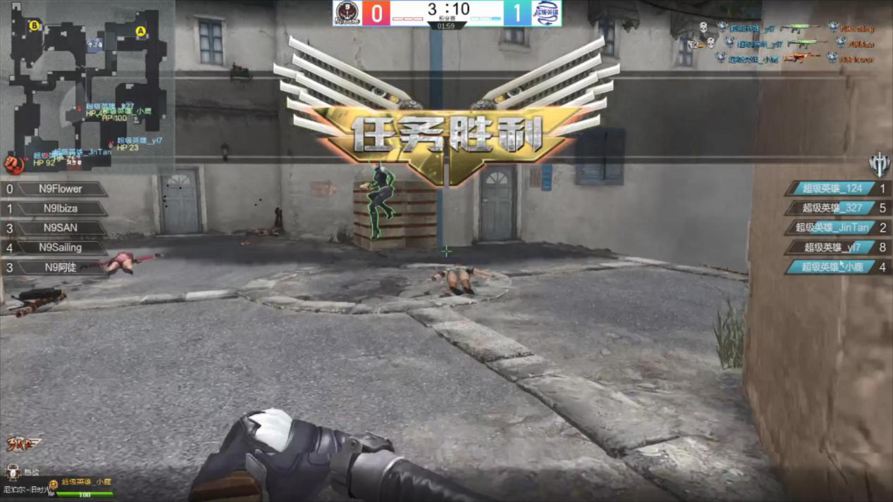 超级英雄率先担任进攻方,N9担任防守方。开局327三杀立威,N9顶防追平,此后比赛节奏由超级英雄接管。N9只能依靠个人能力得分,超级英雄选手状态更佳,以5-2领先。超级英雄进攻节奏很快,上半场以7-3领先。下半场N9进攻总是在残局被翻,连续几个残局都失败,下半场一分未得。超级英雄以10-3拿到赛点,最后一波顶防完胜拿下胜利。