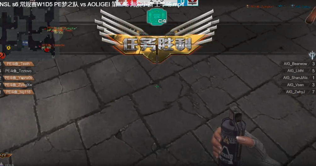 PE率先担任进攻方,AIG担任守卫方。凭借ZwhyJ的发挥,AIG以2-0防守开局。但PE枪法更优,进攻丝毫不乱,单凭借枪法追平比分3-3。Zying狙击全场最佳表现,总能帮助队伍拿下残局,上半场个人击杀15个,队伍以7-5领先。换边后Tzztovo又频繁连杀,击杀数14个,而此时全场第二高击杀只有5个,PE以11-7领先。随后AIG进攻连连得分,分差只有一分。最终PE稳住阵脚以13-10取得胜利。