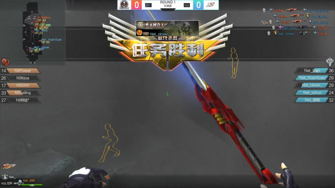 NAT率先担任进攻方,N9担任守卫方。N9前压反被针对,NAT拿到第一分,并且以2-0开局。N9通过2v2和2v1残局得分,NAT整体状态更佳,比分4-2。上半场NAT以7-2领先,N9陷入被动。攻守互换后N9进攻连追2分,并不断缩小分数差距,但NAT在上半场建立巨大优势,下半场仅拿到2分就到赛点。最后一波朗朗狙击连杀,NAT亿10-6顺利拿下最终胜利。