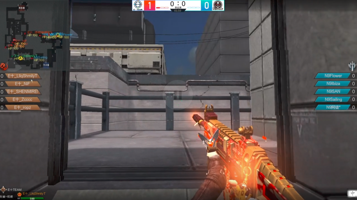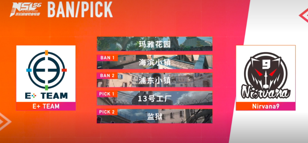 E+率先担任进攻方,N9担任守卫方。E+进攻一会RUHS一会慢摸,不论破点还是残局,总能打出优势,连连得分。N9防守不稳,尤其心态影响枪法,很难有所发挥。上半场比分定格7-2,E+领先,优势较大。换边后,N9开局掉人但残局连杀拿下,然而E+不再给机会,连续拿下3分取得胜利,顺利晋级四强。