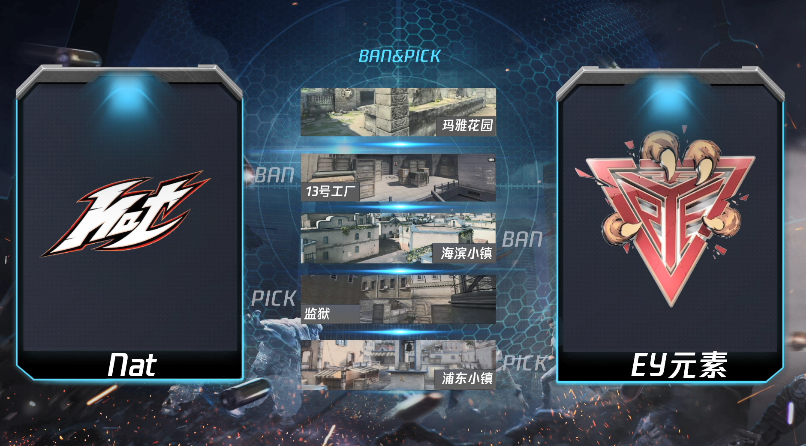 第二图监狱,EY率先担任突击者,NAT担任守卫者。开局xluayy三杀,EY拿到首分,NAT后点防守不动如山,连续得分。Tzzt惊艳连杀但残局被终结,gwb枪法压制,NAT残局思路很清晰,反而是EY在残局方面有些迷,连连丢分,上半场比分定格7-2,NAT领先。攻守互换后,NAT进攻并不着急,非常稳健的摸排,两队各自三杀,时间耗尽EY扳回一分。趁此机会,EY展现老牌队伍的实力,连追数分逼平比分,7-7。两队回到原点并再次展开拉锯战,随着HYL的三杀,EY以10-8战胜NAT。