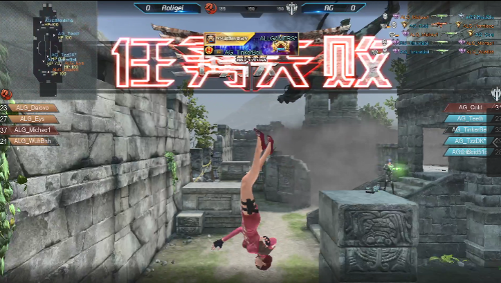 第一图玛雅花园,ALG担任进攻方,AG担任守卫方。开局AG一波压家,率先突破10个击杀,ALG一波小刷屏占据中桥。AG组织反攻成功突破,依然保持一定的人头优势,30-25。Cold五杀,AG趁机压制将人头差距扩大到10个,此时ALG仍然有两名选手没有进入状态。ALG逐渐找到节奏,将分差缩小到5个左右,但AG又是一波刷屏打回去,101-90。比赛进行到后期,AG不会给对手任何机会,最终以150-135战胜ALG。