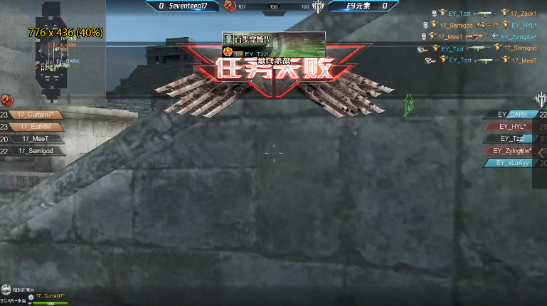 第一图玛雅花园,17担任进攻方,EY担任守卫方。一上来EY借助一波小刷屏压家,但被发现,17整体有些被动,暂时落后。EY进入状态非常快,17枪法难以抵抗,分数来到25-40。初期就是这样大的分差,几乎可以预见结局,17很难翻盘。17对于节奏把控不够,只能拼选手个人能力,EY各种压家给对手造成极大压力,连杀多杀不断,分差超过20个。击杀过百的时候,比分为101-68,差距又一次扩大到30个人头,EY稳操胜券,17家园保卫战。最终EY以150-107战胜17。