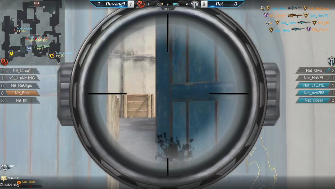 第二图海滨小镇,NAT率先担任进攻方,N9担任守卫方。NAT进攻缓慢但多点开花,一波perfect拿到首分。N9防守完全没有办法,各种被击破,0-6落后。NAT全员爆发以9-0结束上半场,换边后N9追回一分,但也只是这一分,NAT不给任何机会拿下一回合,以10-1战胜N9。