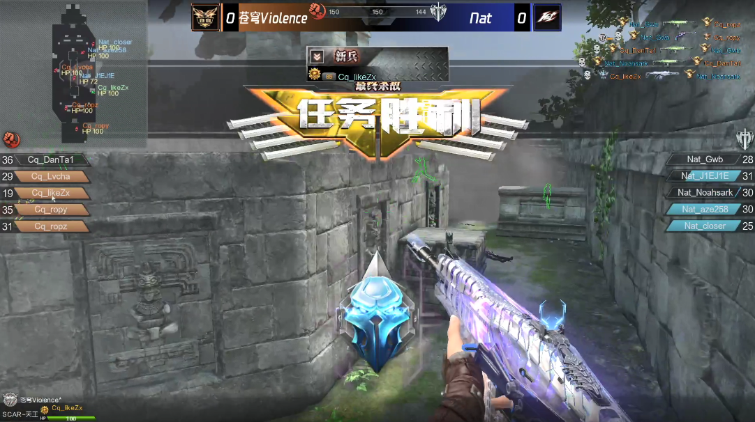 第二图浦东小镇,苍穹率先担任进攻方,NAT担任守卫方。苍穹一波破防成功进入B区并拿下第一分。NAT的防守似乎出现问题,屡屡被对方得分,0-3。上半场苍穹势如破竹,竟然以9-0领先对手,NAT彻底崩盘。换边后,NAT进攻又被逐个击杀,苍穹以多打少残局顺利拿下,最终苍穹以10-0春天战胜NAT。